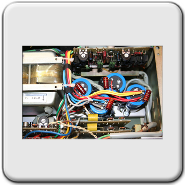 Elektrolytkondensatoren von FC Panasonic und Metallfilmwiderstände Vishay-Dale non-magnetic.